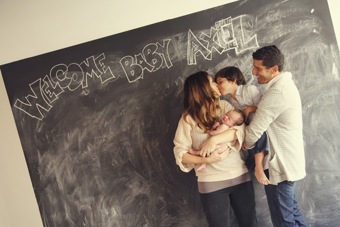 Valerie and her adorable family came to see me yesterday for the first time for some family shots with their brand new baby, Axel. She owns the salon Urban Image which is a few doors down from our new location, and I was so excited to hear that she was going to come see me! Baby Axel is just the sweetest little nugget, he was so good for his shoot and big brother Crews did a great job snuggling and hugging him the whole time. We just finished constructing a moveable chalkboard wall, and so Axel’s photos were officially the first in front of the chalkboard. I just love how everything turned out and I’m so excited to be working with this gorgeous family! Valerie, Armando, Crews and Axel, hope you love your previews and we hope to see you again soon! ~Krista