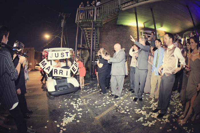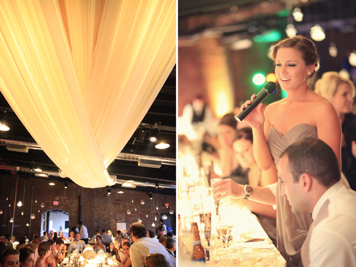 After the ceremony, the crew was chauffeured over to Flying Saucer, where they had a little break and did photos all around the restaurant. Then we headed over to preview the reception at the Cannery. As we entered the Cannery, I don’t think any of us could have imagined how beautiful it was going to be! Angela Proffitt (wedding planner extraordinaire) did an AMAZING job on pulling the venue together, I haven’t ever seen the Cannery look so beautiful. It was dripping in crystals, pastel rose petals, candles and gorgeous details. Unbelievably pretty!